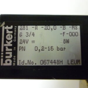 Burkert 067448H 0281-A-20,0-BB-MS-F-000 G3/4 24VDC 8W Solenoid valve 3/4″